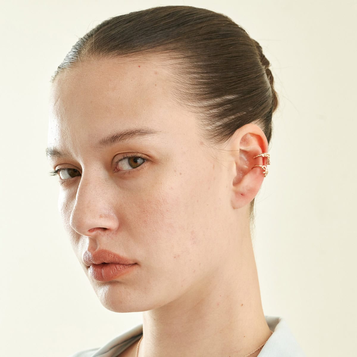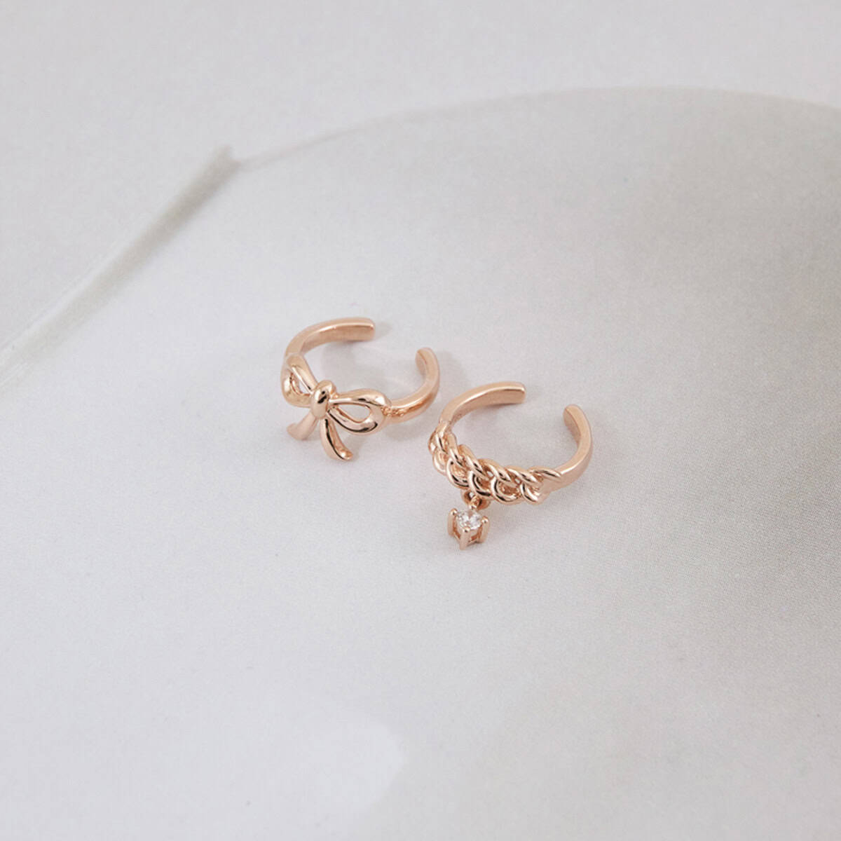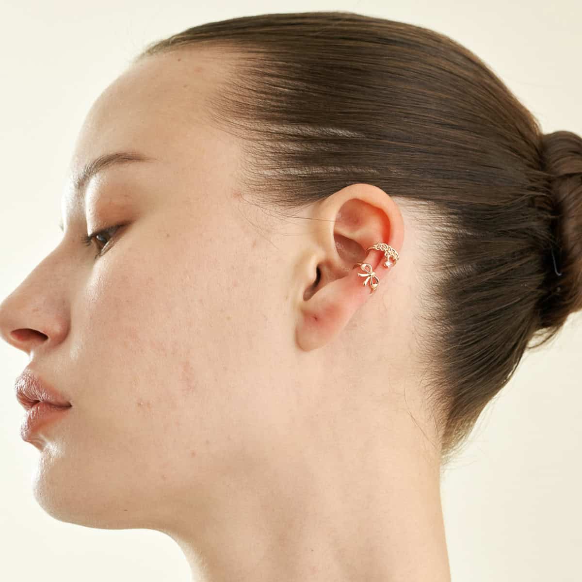 หนึ่งในดีไซน์ของ Ear Cuff โดดเด่นด้วยลายโบว์ที่เพิ่มความน่ารักและความอ่อนหวาน เหมาะสำหรับการเพิ่มเสน่ห์ให้กับลุคของคุณ
