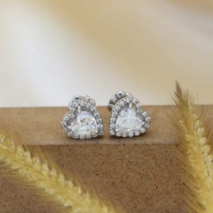 ต่างหู Stud ดีไซน์รูปหัวใจที่แสดงถึงความรักและความห่วงใย ประดับด้วยพลอย Cubic Zirconia ทรงหัวใจอย่างสวยงาม เพิ่มความเปล่งประกายด้วยการประดับด้วยพลอย Cubic Zirconia ทรงกลมล้อบรอบทำให้ต่างหูคู่นี้ไม่เพียงแต่เป็นเครื่องประดับที่สวยงามแต่เป็นสัญลักษณ์ของความรักที่สะท้อนถึงสไตล์ของคุณได้เป็นอย่างดี