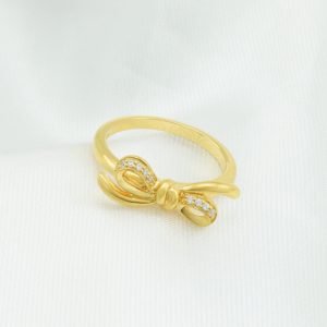 ที่ให้ความรู้สึกถึงความน่ารัก ขี้เล่นแต่ยังคงความสง่างาม ด้วยดีไซน์การออกแบบให้เป็นโบว์ที่มีลูกเล่นด้วยการประดับพลอย Cubic Zirconia เปล่งประกายตามแนวเส้น