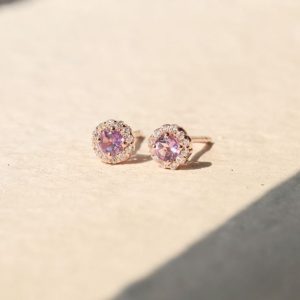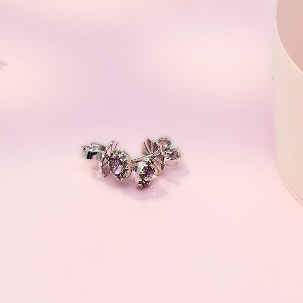 ต่างหูรุ่น SANDY ประดับอัญมณีแท้ PINK AMETHYST