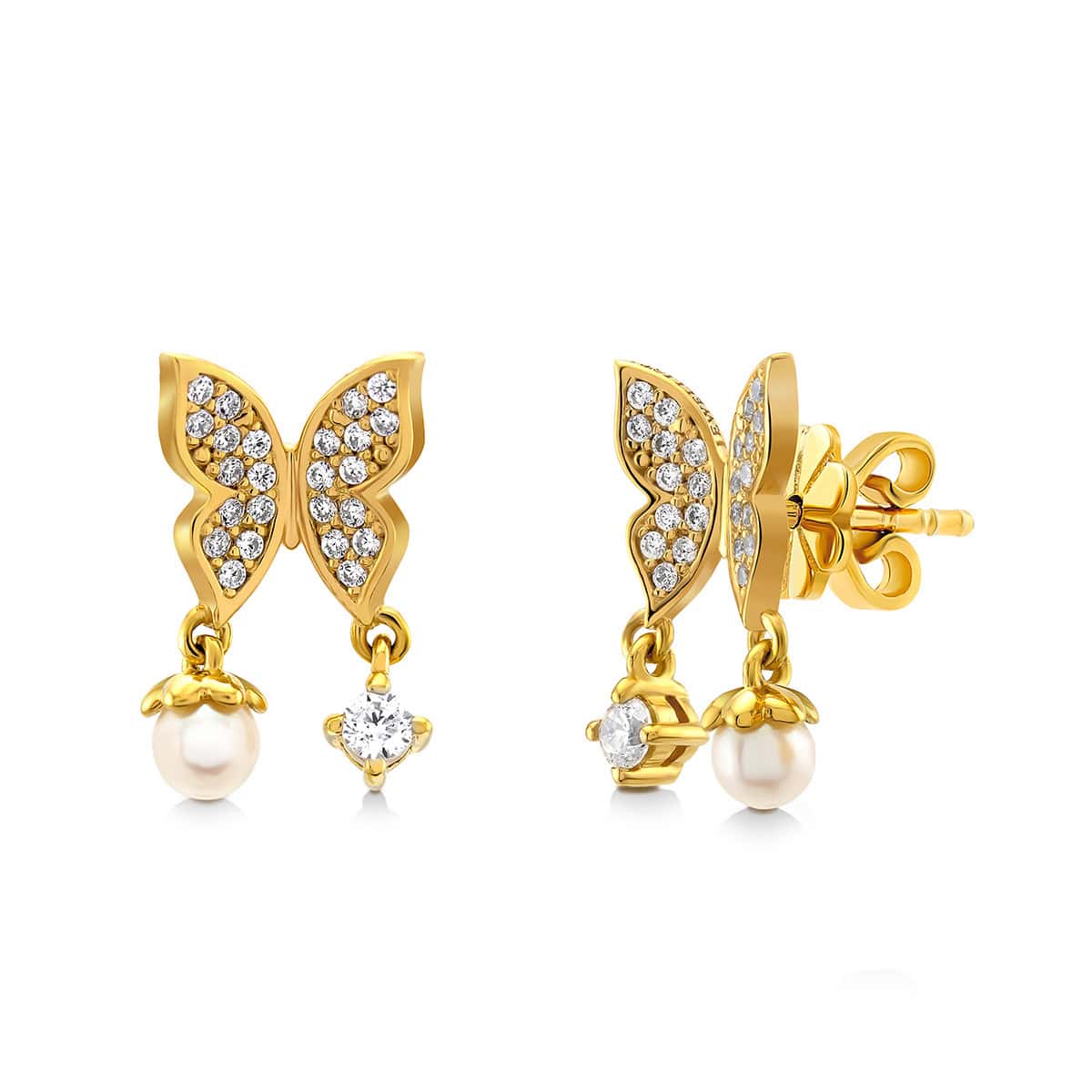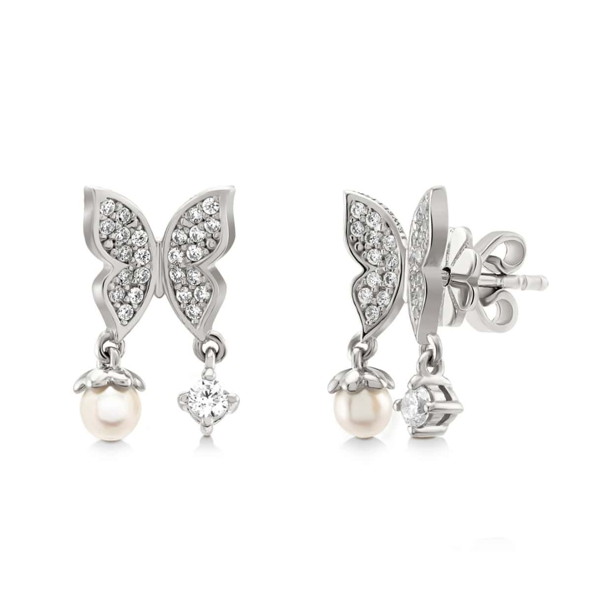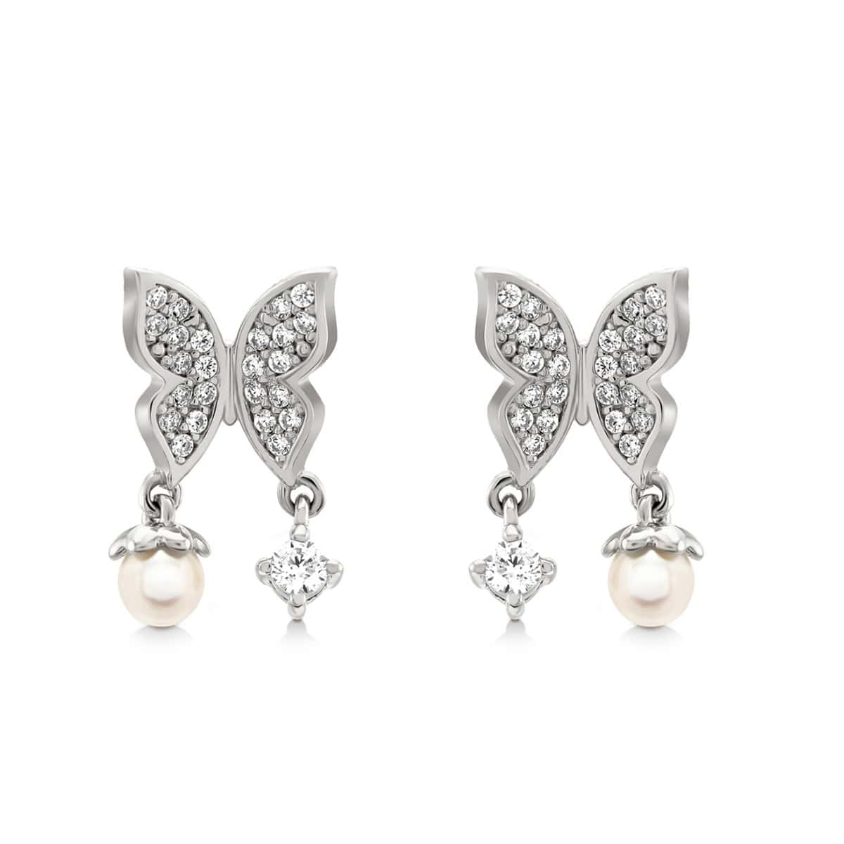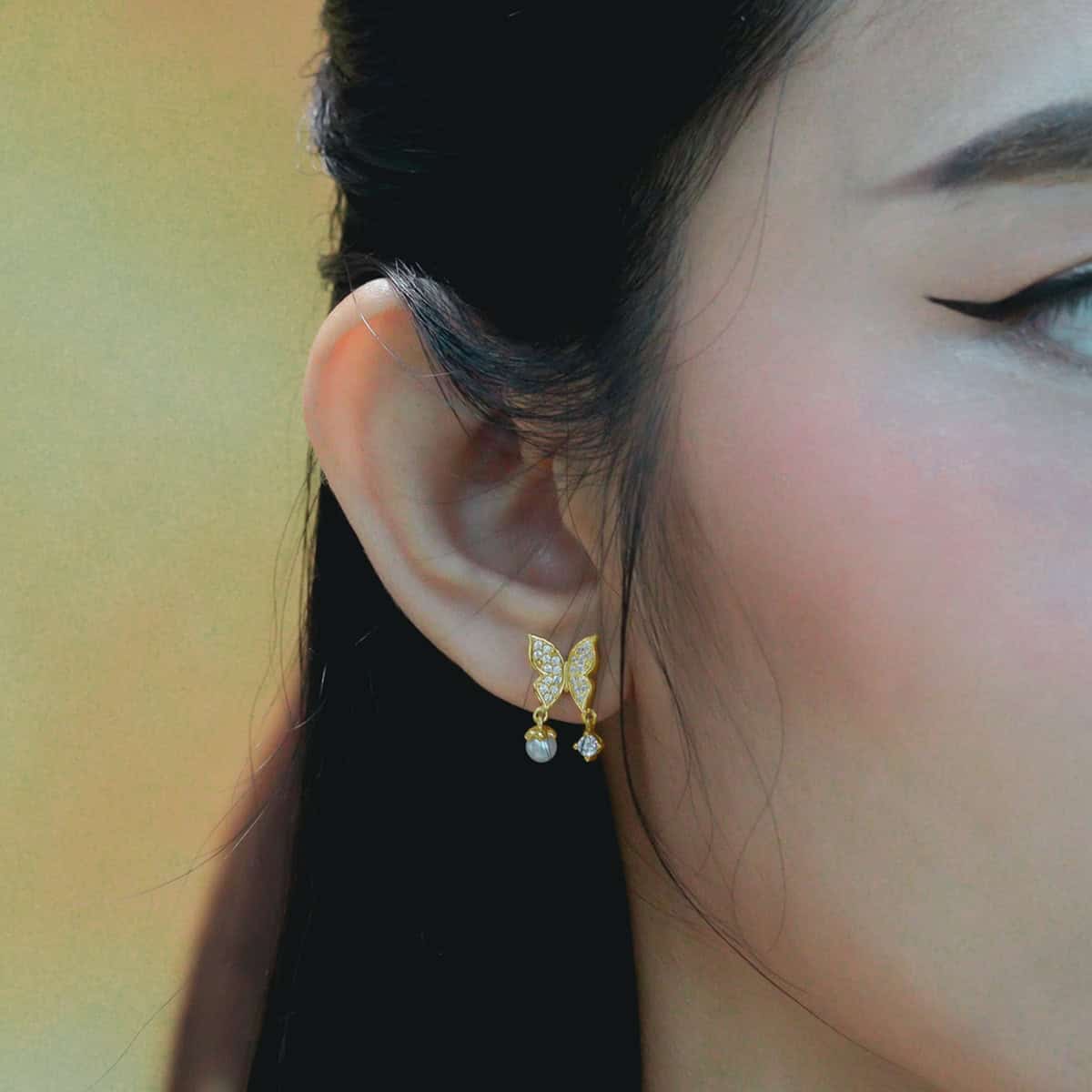 ต่างหูดีไซน์ผีเสื้อประดับที่สื่อความหมายดีๆถึงการเปลี่ยนแปลงและการเริ่มต้นใหม่เพิ่มลูกเล่นด้วยการประดับจี้ไข่มุกและพลอย Cubic Zirconia ที่ปีกทั้งสองข้างของผีเสื้อ เหมาะสำหรับทุกลุค ทุกสไตล์การแต่งตัว ไม่ว่าจะใส่ในวันธรรมดาหรือใส่ในงานสำคัญเพื่อเพิ่มความโดดเด่นของคุณ