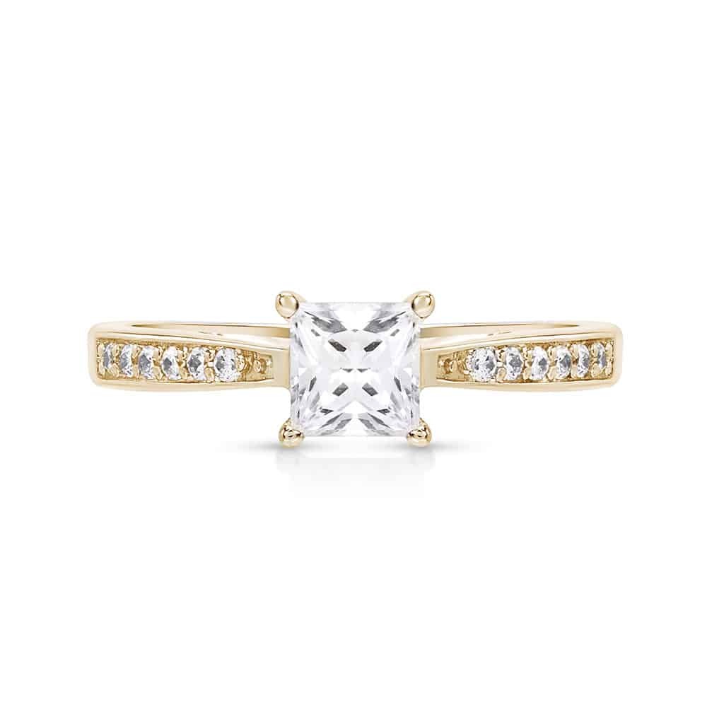 แหวน Ariel แหวนเพชรเม็ดเดี่ยว ให้ลุคเรียบหรู mix & match กับเครื่องประดับชิ้นอื่นๆได้ง่าย ดีไซน์แปลกตาไม่ซ้ำใครด้วยการเลือกใช้ พลอย Cubic Zirconia ทรง Square ขนาด 5.00 mm. จำนวน 1 เม็ดและตกแต่งเพิ่มเติมด้วยพลอยทรงกลมขนาด 1.00 mm. จำนวน 12 เม็ด