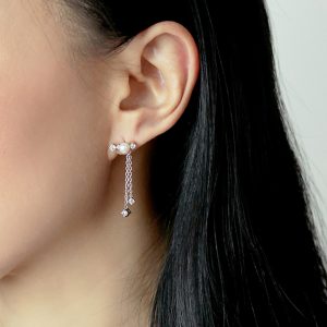 ต่างหูเงินแท้รุ่น Candice ประดับไข่มุกน้ำจืดแท้ (Cultured Fresh Water Pearl) และพลอย CZ