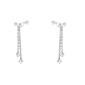 ต่างหูเงินแท้รุ่น Candice ประดับไข่มุกน้ำจืดแท้ (Cultured Fresh Water Pearl) และพลอย CZ