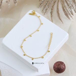 Cassa ถ่ายทอดเสน่ห์ของความอ่อนโยนในทุกย่างก้าว ผ่านดีไซน์สร้อยข้อเท้าเส้นบางประดับด้วยจี้หัวใจขนาดเล็กเรียงรายรอบข้อเท้าอย่างละเมียดละไม สื่อถึงความรัก ความเบาสบาย และความสุขเรียบง่ายที่อยู่รอบตัวในทุกวัน เหมาะสำหรับผู้หญิงที่รักในรายละเอียดเล็ก ๆ