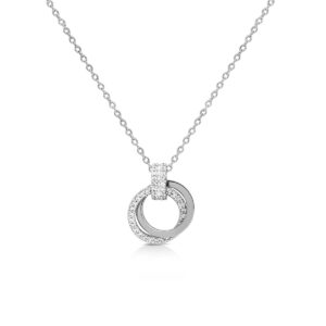 สร้อยคอดีไซน์ห่วงกลมซ้อนกัน แสดงถึงความรักอันเป็นนิรันดร์ หรือแสดงถึงความผูกพันธ์ที่มีให้กัน โดดเด่นทั้งดีไซน์และความหมาย ประดับพลอย CZ เพิ่มความหรูหราโดดเด่นให้กับคุณ