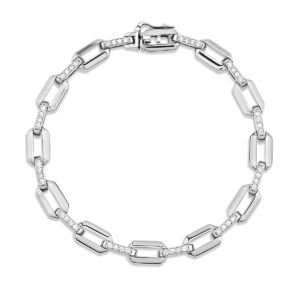 สร้อยข้อมือเงินแท้ รุ่น Fenella หลงรักตั้งแต่แรกเห็น กับไอเทมใหม่สุดเท่ที่ได้รับแรงบันดาลใจจากแฟชั่น street style มาในรูปแบบดีไซน์โซ่กับสร้อยข้อมือรุ่น Fenella สวมใส่แล้วให้ลุคมั่นมีสไตล์แบบฉบับสาวสายแฟชั่น และยังช่วยเสริมลุคในวันปาร์ตี้ของคุณให้เปรี้ยวจี๊ดไม่เหมือนใครโดดเด่นแวววาวสะดุดตา ด้วยการตกแต่งด้วยพลอย CZ (Cubic Zirconia) ทรงกลม ขนาด 1.50 mm. ใช้เทคนิคชุบแบบ Electro-plating ทำให้สินค้าไม่ลอก ไม่ดำ