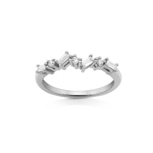 แหวนที่เน้นลูกเล่นของการเรียงพลอยรูปทรงต่างๆ ทรงกลมสลับกับทรง Baguette แต่ดีไซน์ออกมาได้อย่างลงตัวสุดๆ เพิ่มเสน่ห์ความหรูหราและความมั่นใจให้กับผู้สวมใส่ได้เป็นอย่างดี