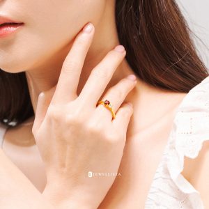 Hannah ถ่ายทอดความหมายแห่งความสมดุลของหัวใจ ผ่านการผสานกันของพลอย Garnet สีแดงเข้มอันทรงพลัง และ White Zircon