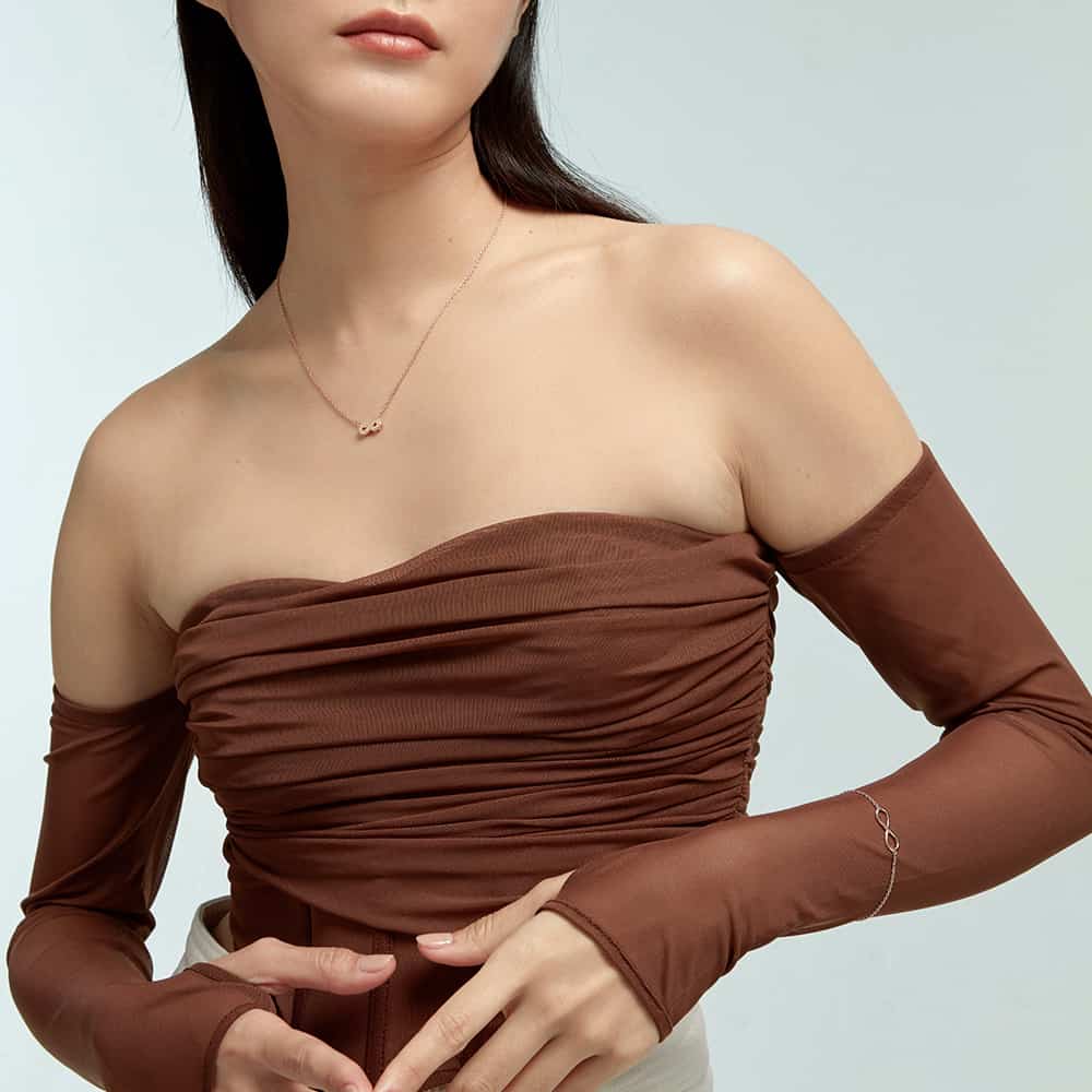 สร้อยคอมินิมอล ดีไซน์ลวดลายอินฟินิตี้ สื่อความหมายถึงรักอันเป็นนิรันดร์ เพิ่มความโดดเด่นด้วยการประดับพลอย CZ ให้มีเสน่ห์น่าหลงใหล ใส่เป็น Everyday look หรือมอบให้คนที่คุณรักเป็นของขวัญ รับรองว่าประทับใจอย่างแน่นอน