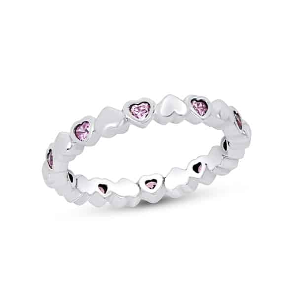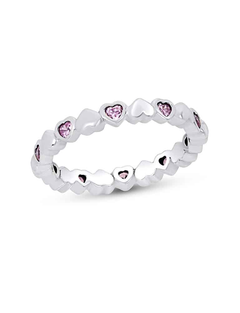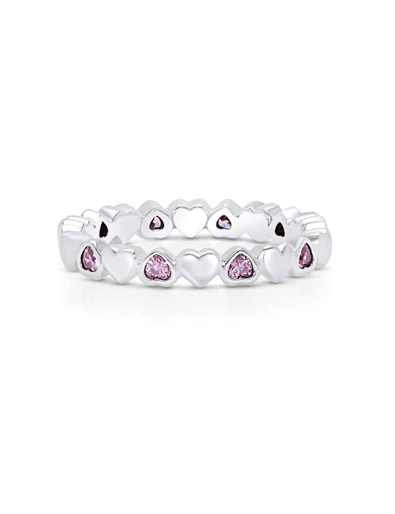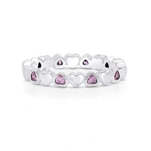 แหวน Isabel แหวนดีไซน์น่ารัก สดใส ที่มีการออกแบบให้เป็นรูปทรงหัวใจกลับหัวสลับกันไปมา ฝังรอบตัวแหวนเป็นอย่างดี ทำให้แหวนวงนี้เหมาะกับการใส่ไปในวันสบายๆ และสามารถเพิ่มเติมความสดใสให้กับลุคของคุณได้อีกด้วย แหวน Isabel ฝังด้วยพลอย Pink Zirconia ทรงหัวใจ ขนาด 3.00 mm.