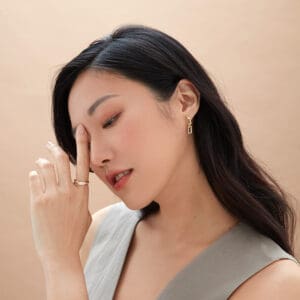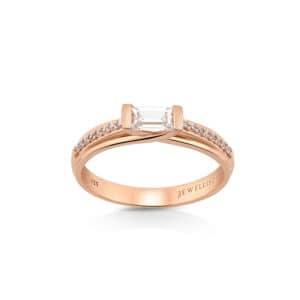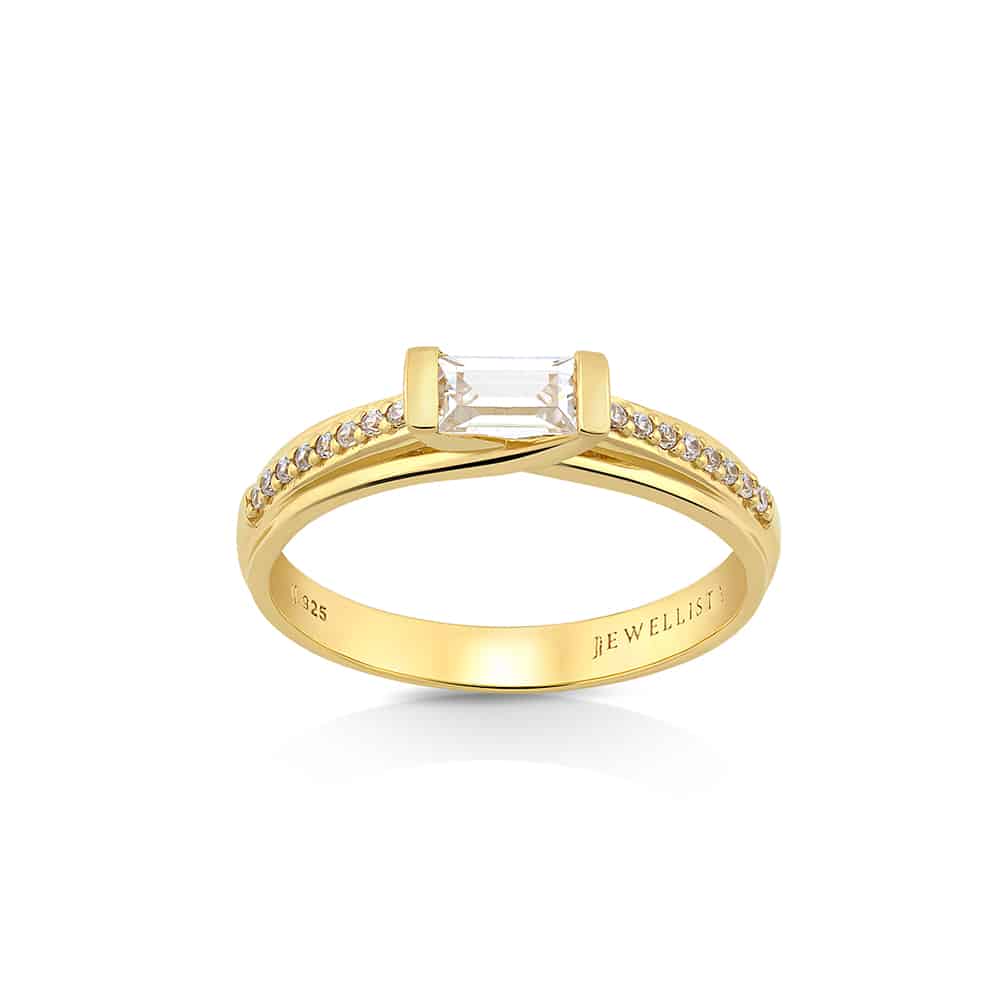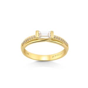 แหวนที่ออกแบบมาเพื่อสร้างพลังให้กับคุณ ด้วยดีไซน์ด้านข้างไขว้กันประคองรับพลอยเม็ดยอดทรงบาร์เก็ตขนาด 5×3 mm. พร้อมประดับพลอยเม็ดเรียงทรงกลมด้านข้างทั้งสองฝั่ง เปล่งประกายเสริมให้คุณโดดเด่นทุกครั้งที่สวมใส่