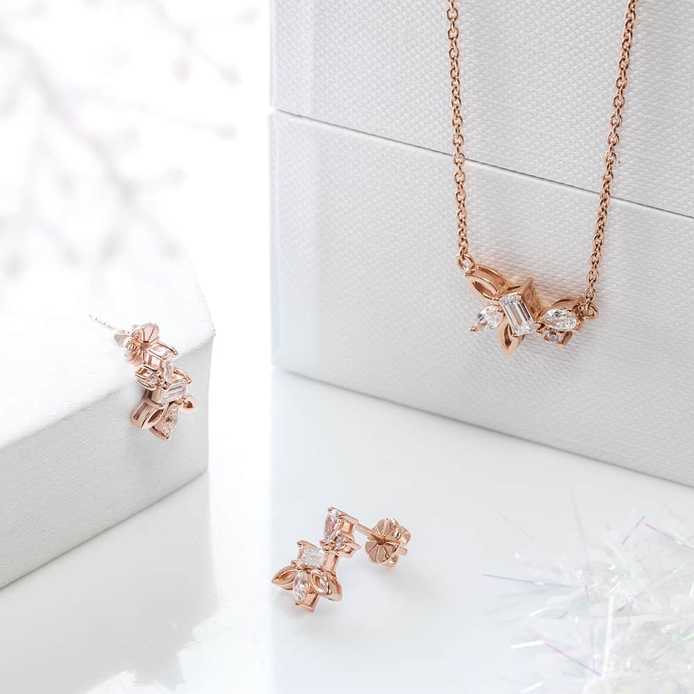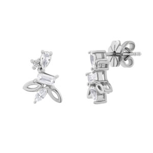 ต่างหูห่วง Jasmin ดีไซน์รูปดอกไม้ เงินแท้ ประดับพลอย CZ