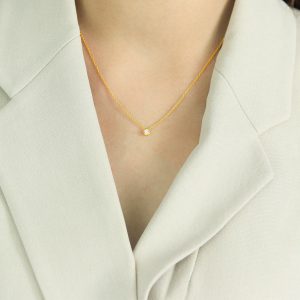 โดดเด่นด้วยดีไซน์เรียบหรู ที่ผสมผสานความทันสมัย และความคลาสสิกไว้อย่างลงตัว จี้ทรงกลมประดับด้วยพลอย Premium Zirconia ขนาด 3 mm.