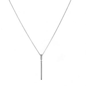 จี้พร้อมสร้อยเงินแท้ สไตล์ minimal รุ่น Mila จี้ถูกออกแบบลักษณะคล้ายเค้าโครงเส้นตรงแนวตั้งประดับด้วยพลอย Cubic Zirconia ขนาด1.10mm. จำนวน 5 เม็ด ความยาวสร้อย 18 cm. รวมส่วนต่อขยาย 3 cm.ตัวเรือนผลิตจาก Sterling silver 925