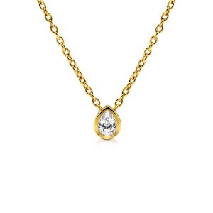 ดีไซน์ทรงหยดน้ำที่สื่อถึงความสง่างาม ประดับด้วยพลอย Premium Zirconia ขนาด 3 mm. ที่ผ่านการเจียระไนอย่างพิถีพิถัน