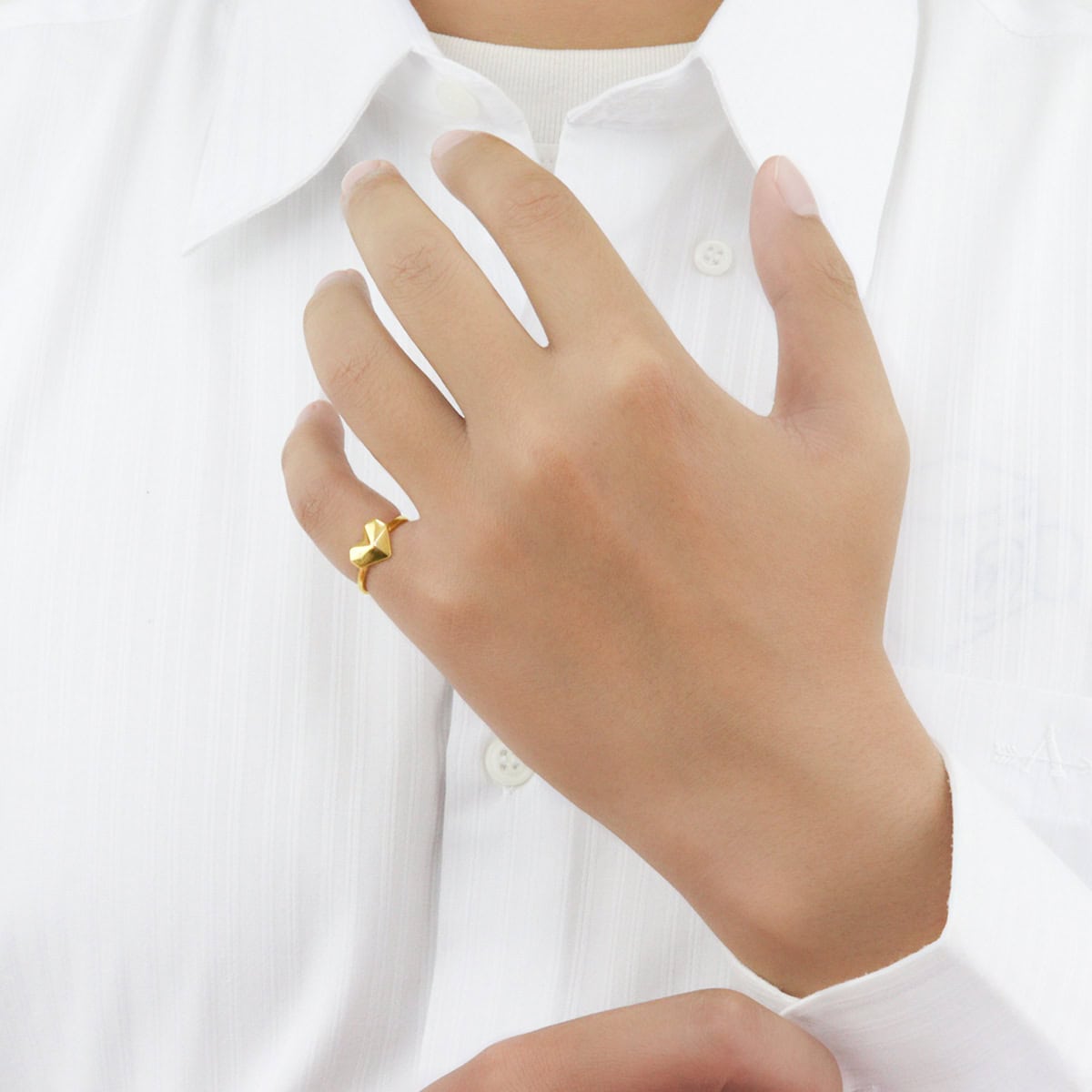 แหวนที่ดีไซน์ทันสมัย น่าค้นหา ด้วยการออกแบบแหวนทรงหัวใจ เพิ่มกิมมิคด้วยการเพิ่มมิติของหัวใจให้เด่นจากแฉกสามเหลี่ยม