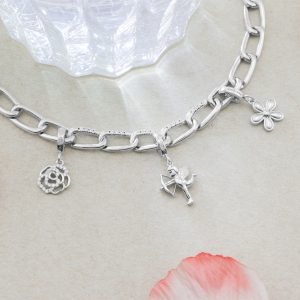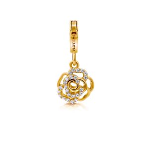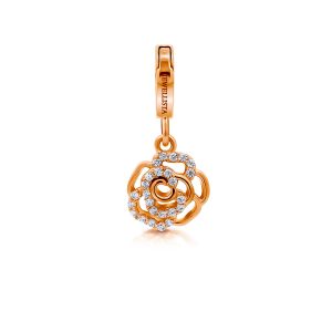 ชาร์ม Roze ดีไซน์ดอกกุหลาบในรูปแบบเส้นโค้งอ่อนที่เรียงตัวซ้อนกันอย่างประณีต พร้อมประดับ Premium Zirconia
