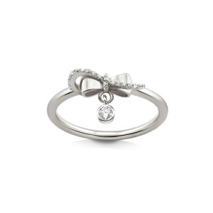 แหวนรุ่น Shelby แหวนดีไซน์โบว์ที่เพิ่มกิมมิคความน่ารักให้ยิ่งขึ้นด้วยการประดับพลอย Cubic Zirconia เรียงกันอย่างสวยงามตามแนวเส้นของตัวโบว์ พร้อมจี้พลอย Cubic Zirconia จำนวน 1 เม็ด เหมาะสำหรับสาวๆที่อยากเพิ่มลุคความน่ารักและมีเสน่ห์ให้กับตัวคุณ เหมาะที่จะมอบให้เป็นของขวัญแก่คนที่คุณรัก หรือคนสนิทของคุณ