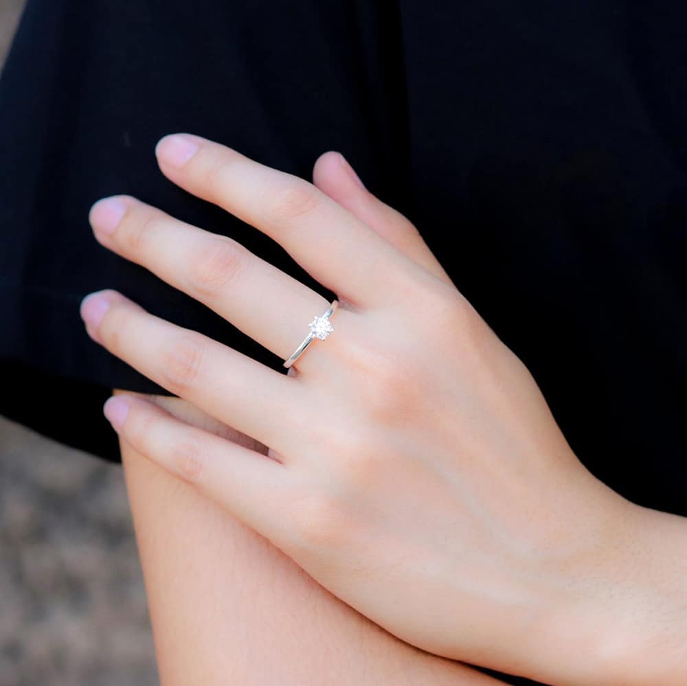 แหวนรุ่น Sydney แหวน Solitaire แหวนเพชรชูเม็ดเดี่ยว เอาใจผู้ที่ชื่นชอบความเรียบง่ายแบบคลาสสิค และสามารถสวมใส่เป็นeveryday look mix & matchคู่กับเครื่องประดับและเสื้อผ้าง่าย โดดเด่นด้วยการประดับด้วยพลอย Cubic Zirconia ขนาด 5.00 mm.ใช้เทคนิคชุบแบบElectro-plating ทำให้สินค้าไม่ลอก ไม่ดำ มีเลือกชุบ