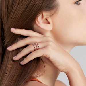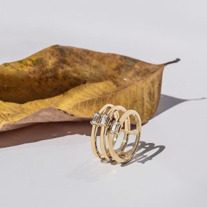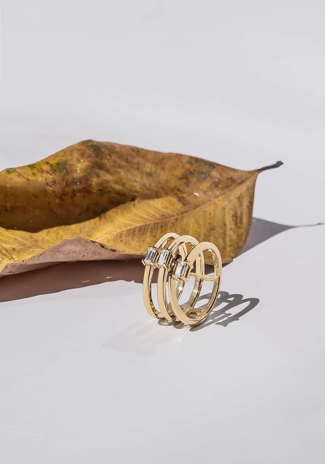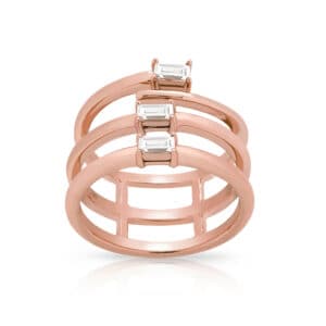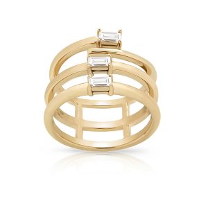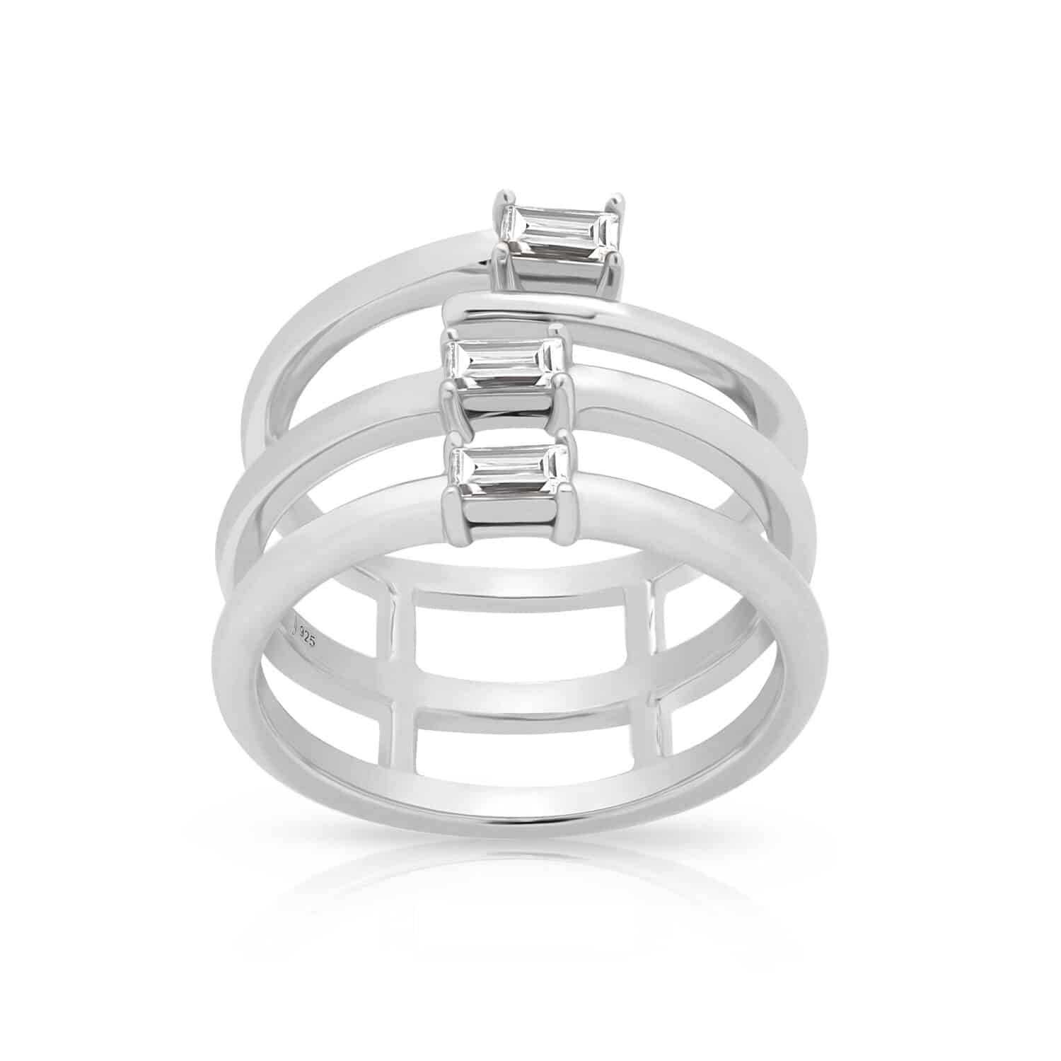 แหวน Trina แหวนดีไซน์กึ่ง Open ring ซ้อนกัน 3 วง ประดับด้วยพลอย Cubic Zirconia ทรง Baguette ที่ช่วยเสริมลุคให้ดูชิค ทันสมัย จนใครๆก็ต้องเหลียวมอง