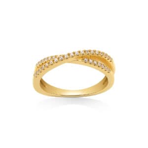 แหวนดีไซน์ลายเส้นไขว้กันประดับด้วยพลอย CZ ที่เรียงรายตามแต่ลายเส้นอย่างลงตัว ช่วยทำให้นิ้วดูมีน้ำมีนวลสวยสมคุณค่า เพิ่มเสน่ห์ความหรูหราและความมั่นใจให้กับผู้สวมใส่ได้เป็นอย่างดี
